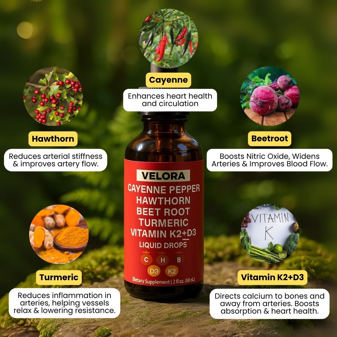 With high-capsaicin cayenne, it maintains healthy circulation and oxygen delivery, and improves vessel flexibility and long-term function.
